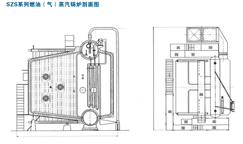 SZS系列燃油燃氣鍋爐為雙鍋筒縱置式“D”型布置快裝水管鍋爐。它由上下鍋筒、膜式水冷壁、對流管束及煙氣冷凝回收裝置組成,燃料在爐膛內燃燒后,煙氣經(jīng)對流管束及煙氣冷凝回收裝置排入煙囪。該類型的鍋爐實現(xiàn)了燃燒充分、排放污染小、操作便捷、安裝方便等優(yōu)點;鍋爐熱效率高、出力大、負荷適應性強、自動化程度高、操作方便、運行安全,是一種理想的有效、低耗、低污染綠色環(huán)保產(chǎn)品;加之國內燃煤鍋爐強改政策的實行,該系列鍋爐將在未來的熱能裝備應用領域里起到非常重要的作用。