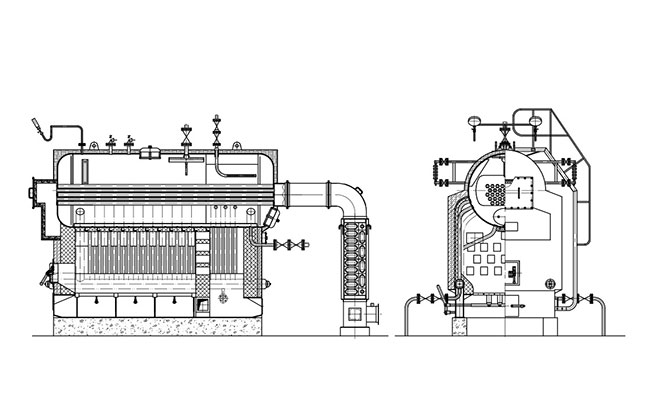 (4)結(jié)構(gòu)緊湊,與同類型鍋爐比較,外形尺寸小,節(jié)省鍋爐房基建投資。