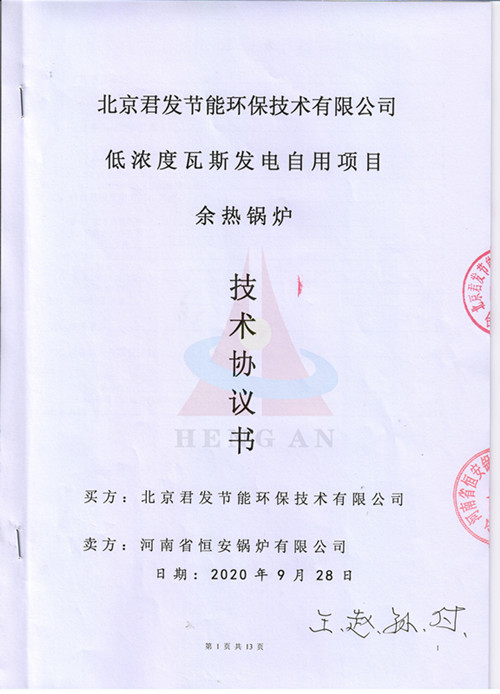 北京君發(fā)節(jié)能環(huán)保技術(shù)有限公司是一家在節(jié)能領(lǐng)域擁有大量專利的高科技公司,尤其是在利用煤層氣燃燒后的余熱發(fā)電方面在國內(nèi)居于地位。經(jīng)過激烈競爭,恒安鍋爐以*優(yōu)的設(shè)計(jì)方案中標(biāo)了該公司在山西的某16t/h余熱鍋爐項(xiàng)目。目前合同已經(jīng)生效,生產(chǎn)正在緊張地進(jìn)行當(dāng)中。